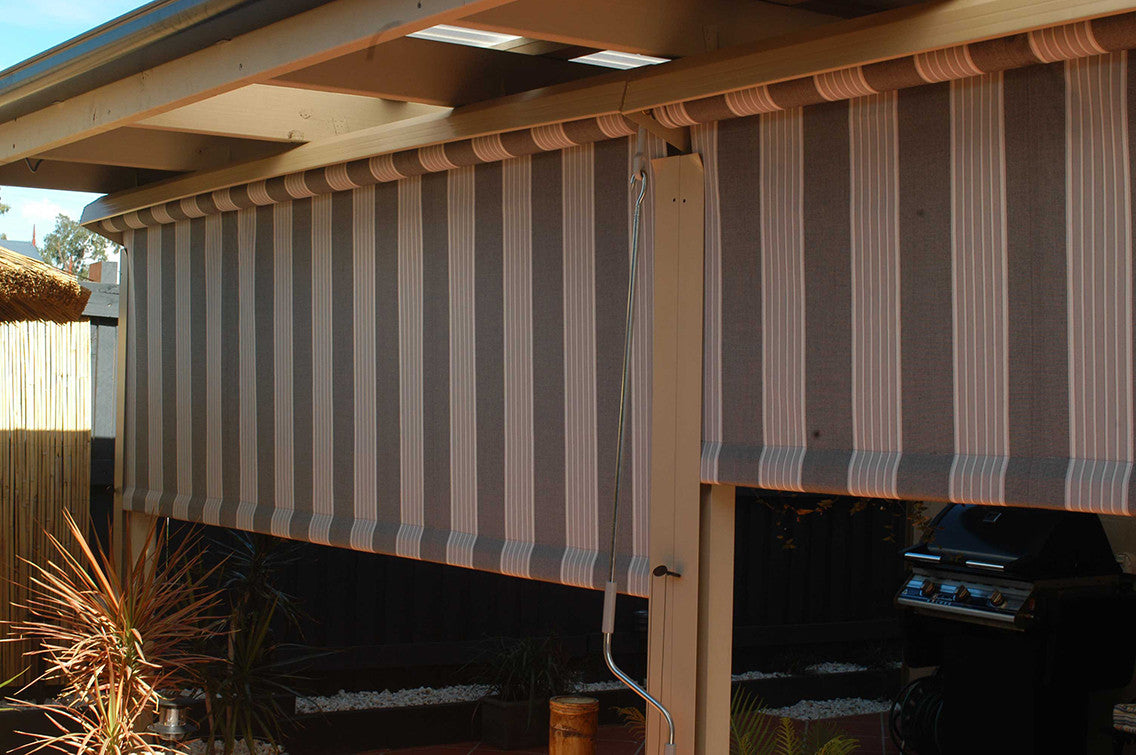 Vertical Awnings are an extremely efficient form of protecting balconies and verandas from both Solar heat and rain . Covered balconies and verandas could be converted into comfortable zones of re-creation or relaxation provided they can be protected from the harsh heat from the sun and also provide privacy when required . Systems Vertical Awnings do just that , provide the user to enjoy a completely open view or have the privacy desired to have a private siesta or celebration . Vertical awnings can be rolled up or down completely.
